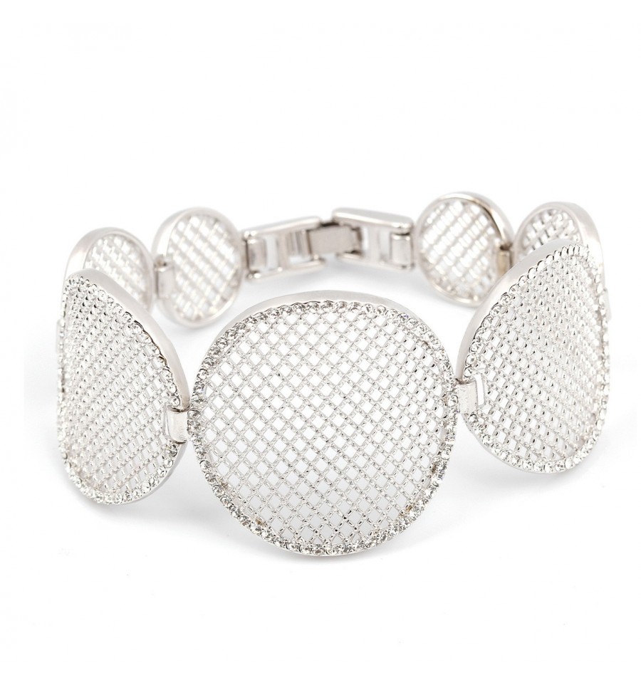 Bratara din aliaj non-alergic, rodiat, decorata cu cristale Swarovski translucide. Cu un design modern si elegant, bratara este potrivita pentru tinutele elegante, office sau smart - casual.