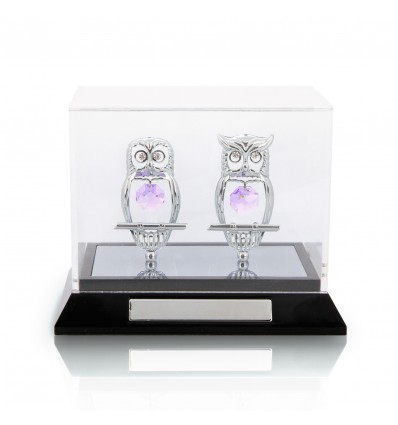 Bufnite cu cristale Swarovaki in caseta, cu placuta de personalizare. In mitologia greaca, bufnita este simbolul Atenei, zeita intelepciunii. Bufnita este deasemeni un simbol Feng Shui. Din acest motiv, cutia poate fi un cadou foarte inspirat pentru pasionatii de feng Shui, dar si pentru un manager important, avocat, judecator sau pentru colectionari. Simbol Feng Shui: Este folosita in planul invataturii si pentru a dezvolta capacitatile in planul carierei. Maestrii Feng Shui spun despre bufnita ca are darul de a crea o energie a averii, atragand dupa sine un sentiment de siguranta si confort interior. In concluzie bufnita este un deosebit simbol al bogatiei. Se amplaseaza in sectorul carierei sau cel al copiilor. Dimensiuni: 12x8cm CRYSTOCRAFT - Colectie de figurine cu cristale Swarovski