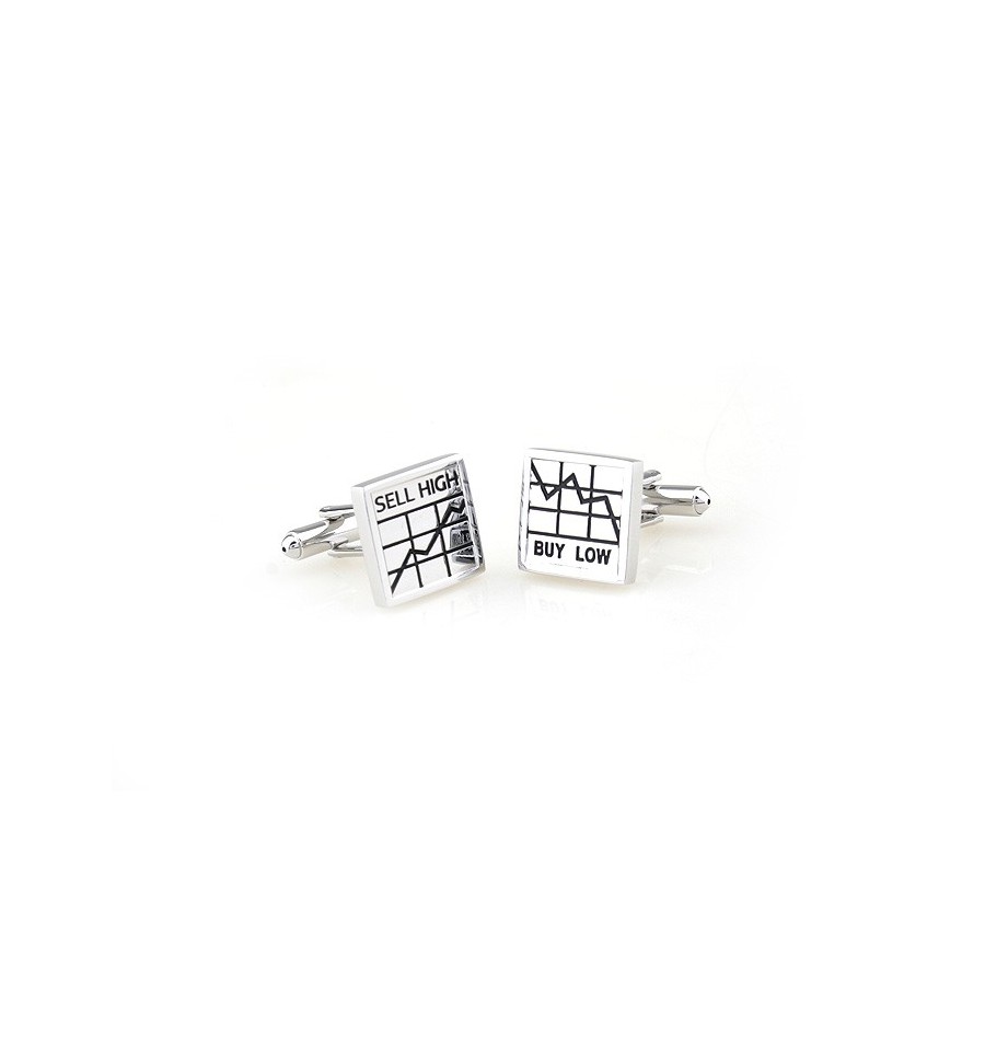 Butoni de camasa placati cu rodiu cu designul uneia dintre celei mai importante strategii de investitie financiara "a cumpara ieftin/ a vinde scump".