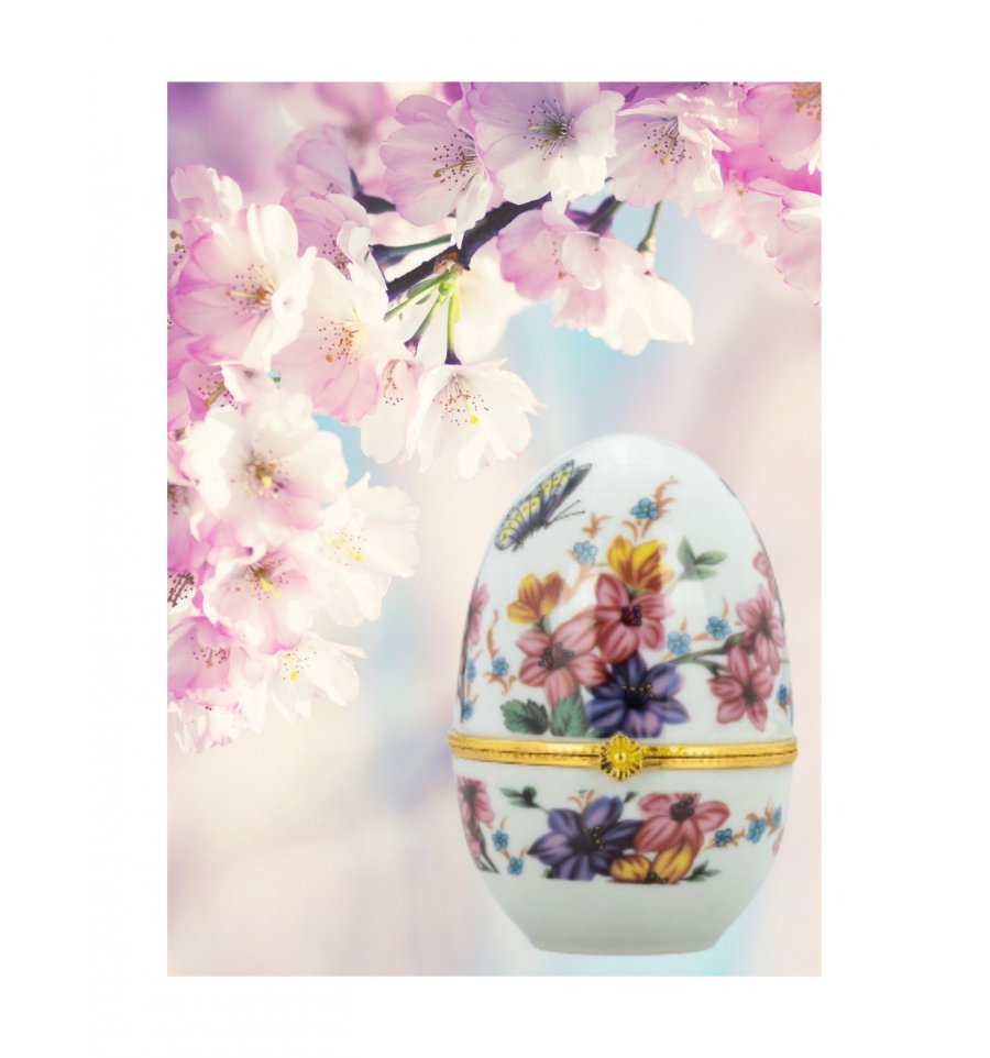 Aceasta cutie de bijuterii din portelan, sub forma unui ou delicat este un accesoriu deosebit, perfect pentru a adauga un strop de veselie si frumusete casei tale.