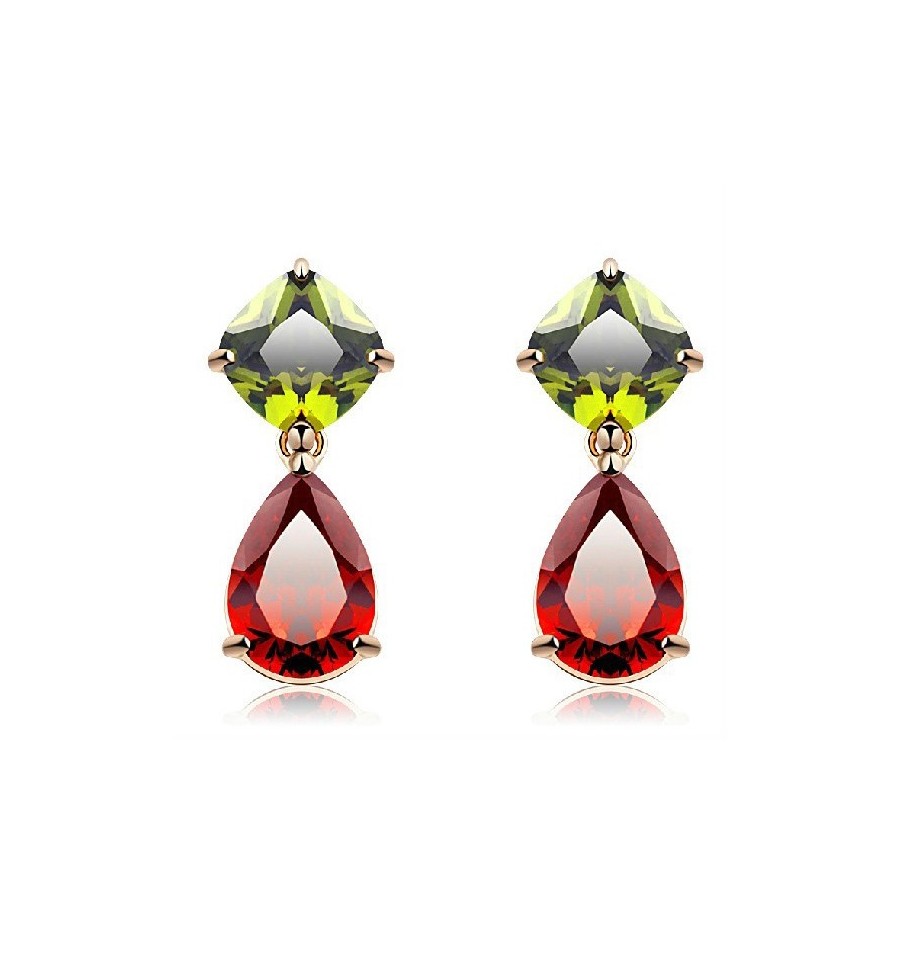 Cercei din aliaj non-alergic, placat cu aur si decorat cu cristale cubic zirconia in culori asortate. O bijuterie eleganta, usor de asortat datorita diverselor nuante continute, acesti cercei sunt alegerea potrivita pentru tinutele de seara si vor straluci fermecator la urechile celei care ii va purta.