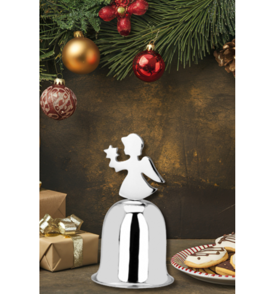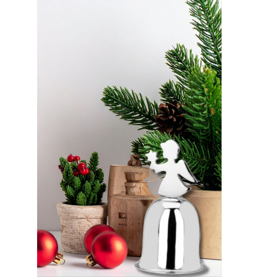 Adauga un strop de farmec festiv decorului tau cu acest clopotel argintat cu ingeras, o piesa delicata ce imbina eleganta metalului placat cu argint cu simbolismul protector al ingerilor.