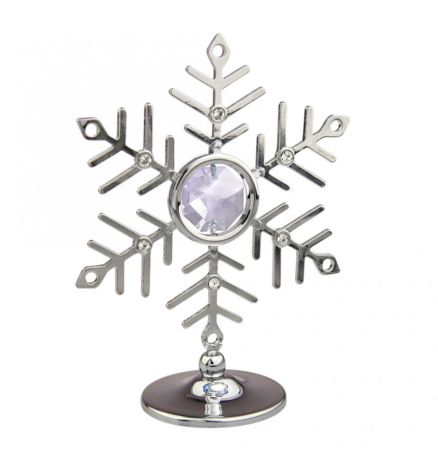 Fulg de nea decorat cu cristal STRASS Swarovski™ de culoare violet Dimensiuni: 6.9 x 7.2 cm CRYSTOCRAFT - Figurine cu cristale Swarovski™