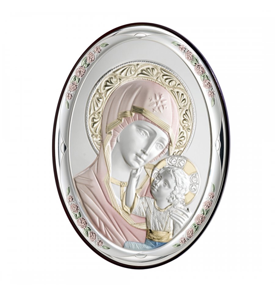 Icoana argintata cu Maica Domnului si Pruncul. Icoana este lucrata cu argint 925 si are certificat de calitate. Constituie un cadou deosebit, foarte potrivit cu ocazia Sarbatorilor Religioase sau pentru a fi oferit proaspetilor miri sau nasilor.
