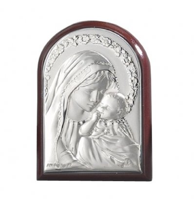 Icoana lucrata cu argint 925 cu Maica Domnului si Pruncul. Icoana are certificat de calitate.