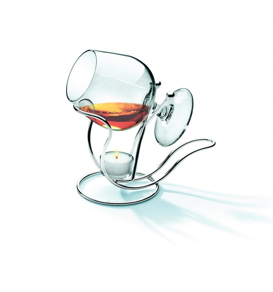Cu forma deosebita si placat cu argint, incalzitorul de Cognac by Chinelli Italy combina atat designul deosebit al paharului cu cel exuberant al suportului, facandu-l asadar cadoul perfect. Bautura este servita in pahare"tulipe", unde este incalzita timp de 10 minute, urmand ca aromele sale sa fie savurate de catre cunoscatori.