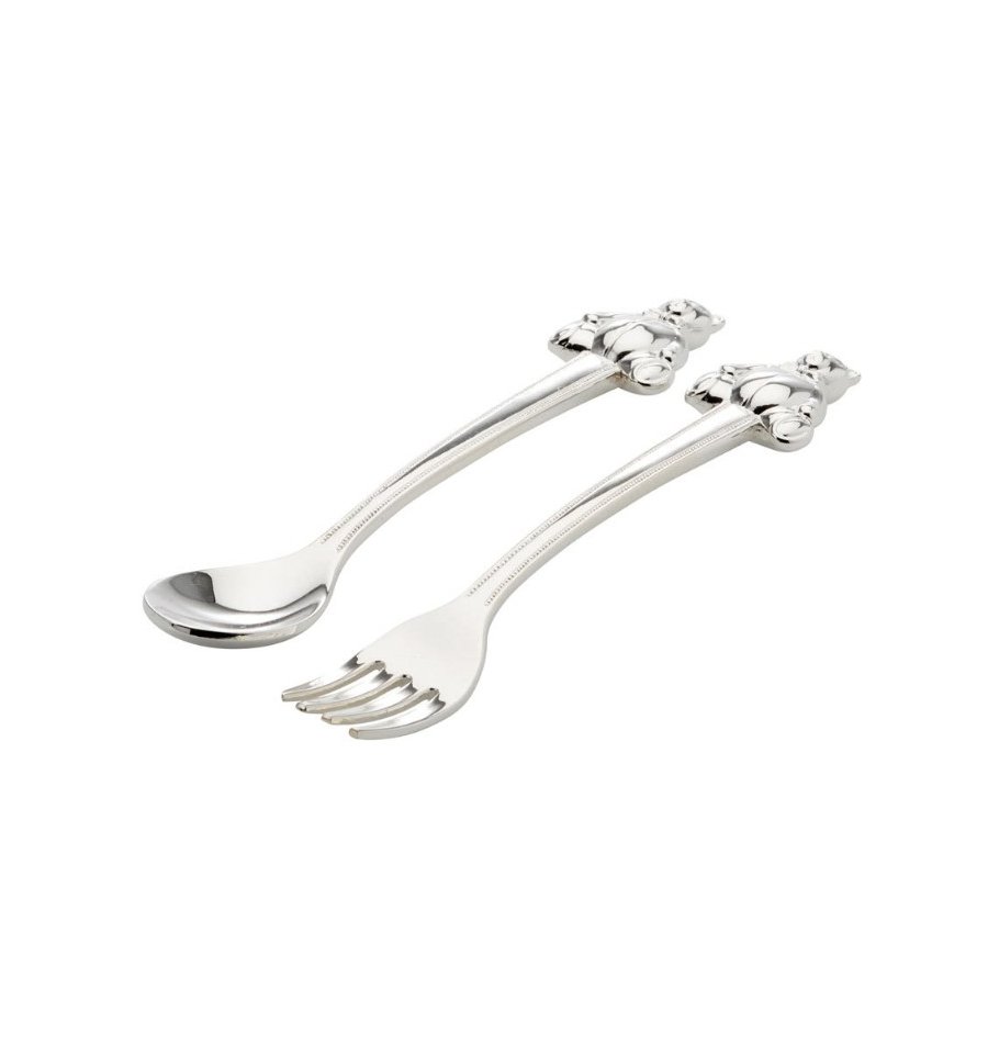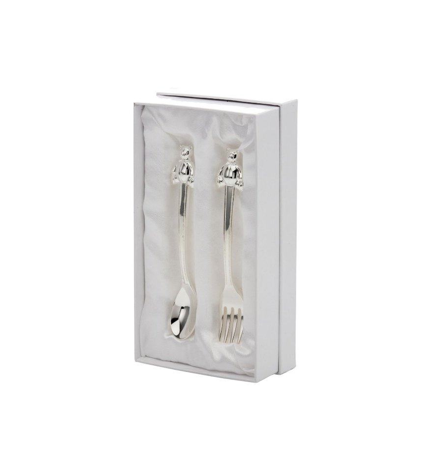 Transformă fiecare masă într-un moment special cu acest set rafinat de tacamuri pentru copii, realizat din metal placat cu argint și prezentat într-o cutie elegantă.